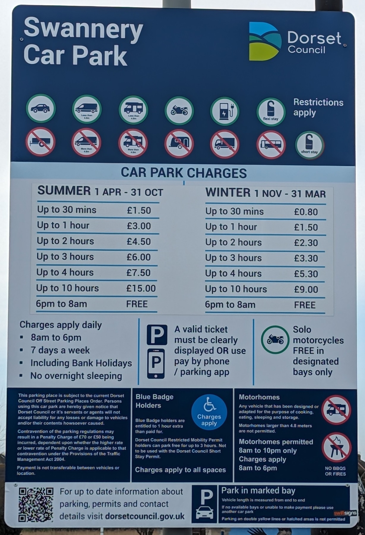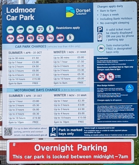 We have a limited number of parking permits which our guests can use for free in either ‘The Swannery’ or ‘Lodmoor’ car parks during their stay, strictly subject to availability on the day, or