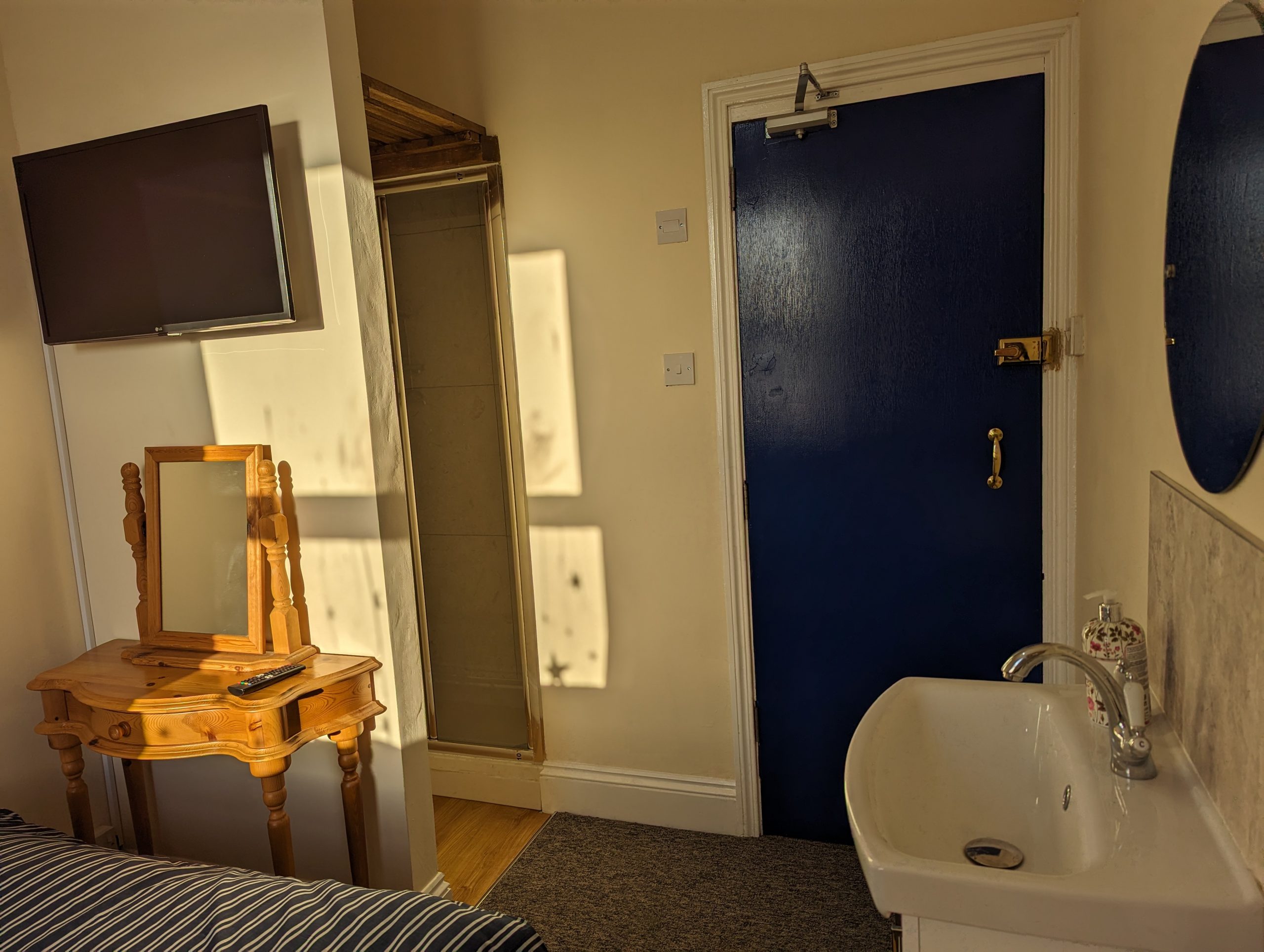 Our West Bay Suite is a standard double room on the first floor at the front of the property, ideal for a single person, a couple or children.